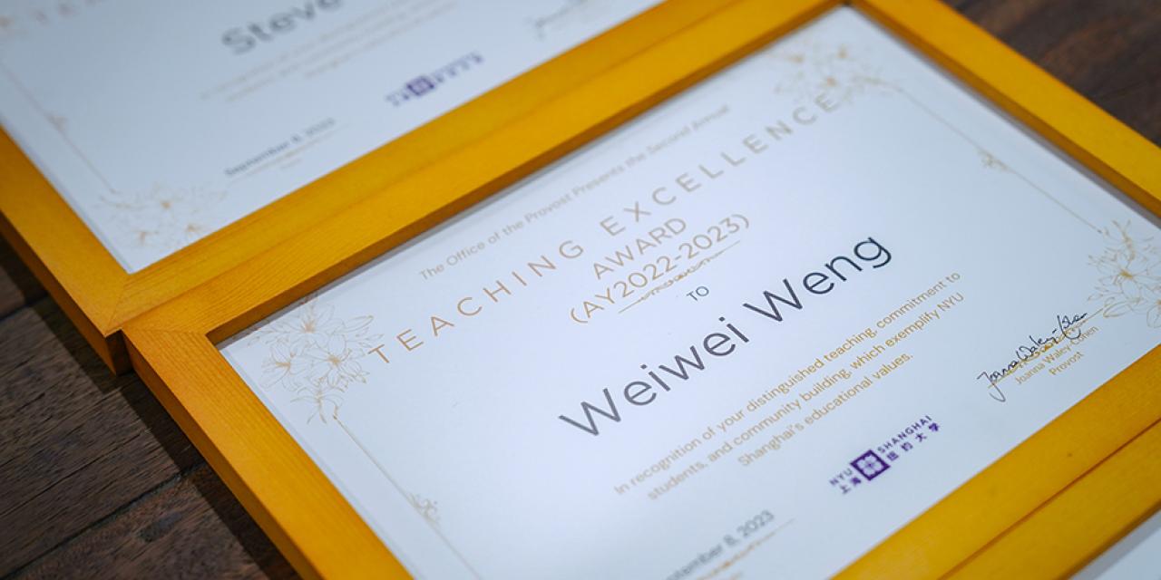 Each year, we host a celebration event honoring the NYU Shanghai Distinguished Teaching Award winners.Award Ceremony for AY 23/24
